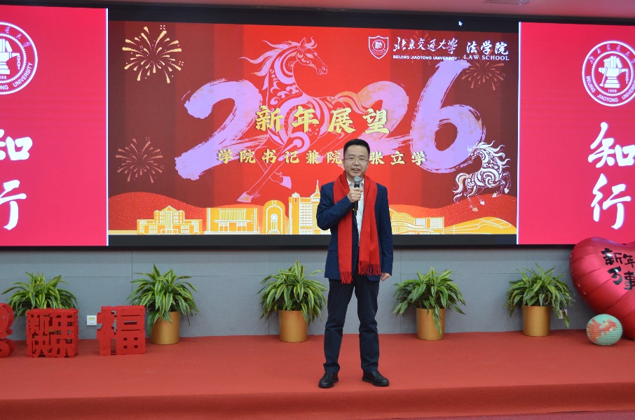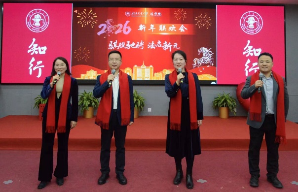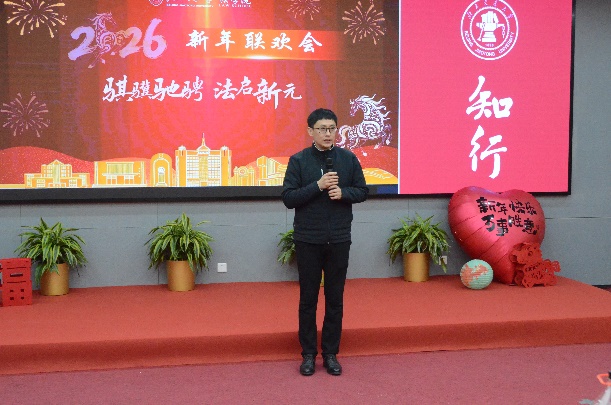 1月16日下午,后入 “骐骥驰骋 法启新元”新年联欢会在综合体育馆三层多媒体教室举行。校党委常委、副校长艾渤,学院领导班子与全院教职工欢聚一堂,共迎新春、共话美好。联欢会分为“骐骥启新程”“同心共奋进”“法韵绘新元”三个篇章,由民商经济法学系副教授王俣璇、国际法学系副教授吕宁宁、团委书记李兴友共同主持。